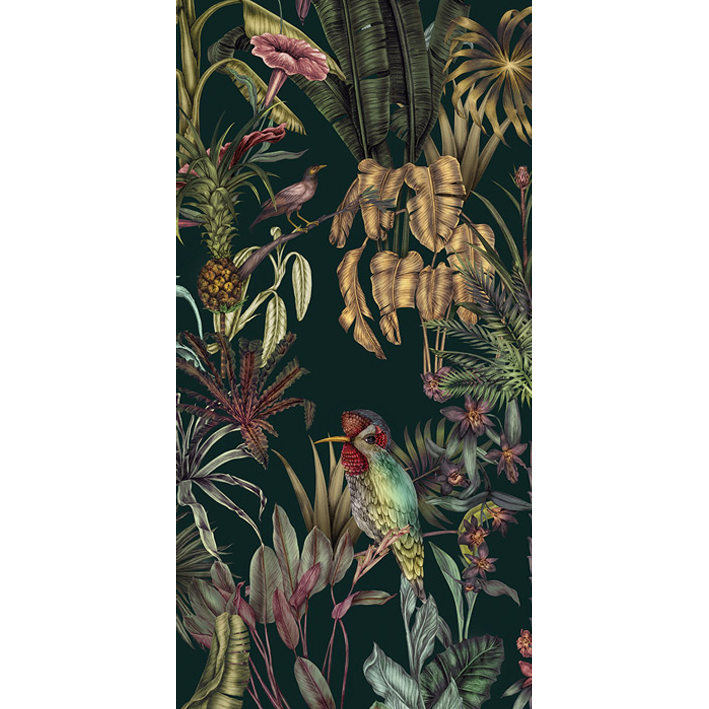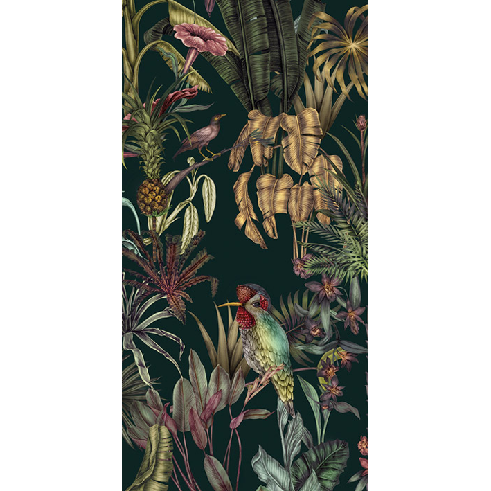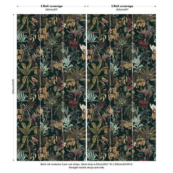 Discover the Birds Birds tropical wallpaper in its dramatic deep green colour scheme. This exotic and tropical green bird wallpaper is perfect for anyone who loves nature and animals. With beautiful illustrations – which were originally hand-drawn – of birds in a maximalist jungle setting, this dark green wallpaper is sure to add drama to any room. Whether you’re looking for an eclectic wallpaper or a tropical wallpaper, our green Birds Birds wallpaper is the perfect choice for you.