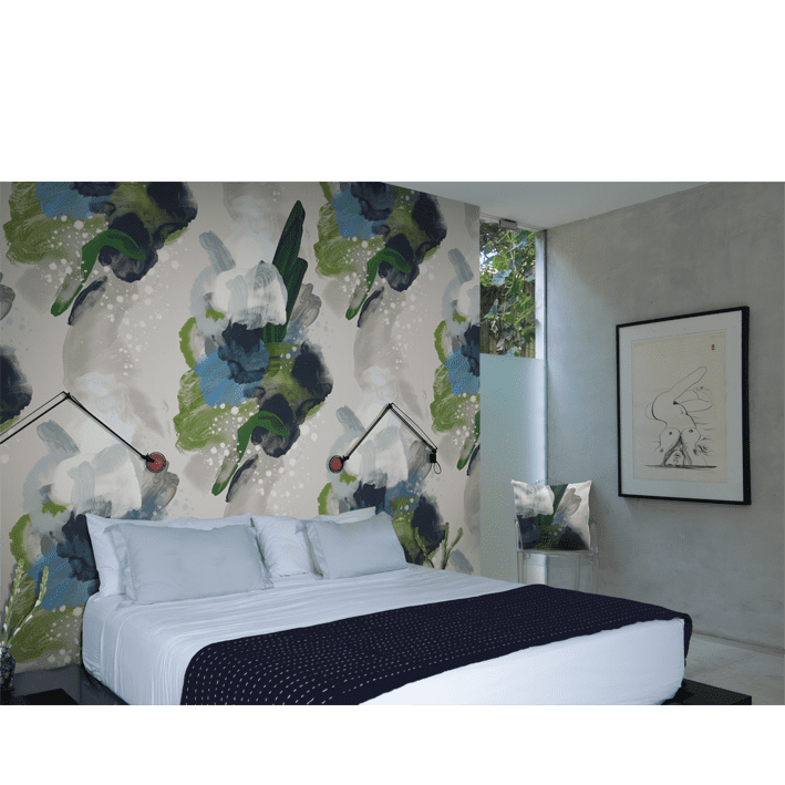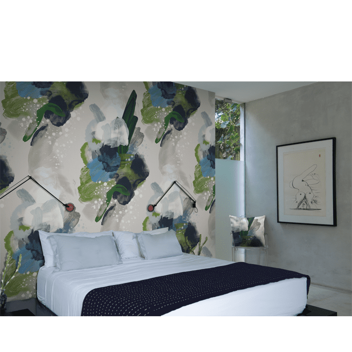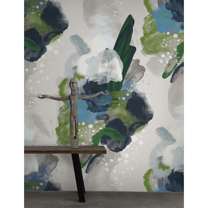 Created by talented Finnish artist Reeta Ek, the English Rose wallpaper makes use of a variety of layered brushstrokes. The strokes on this cream & green beautiful abstract flower wallpaper come together to offer interest, complexity, excitement, and raw power. The brush movements are retained in the paint for this gorgeous centrepiece wallpaper.