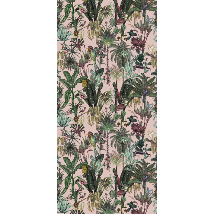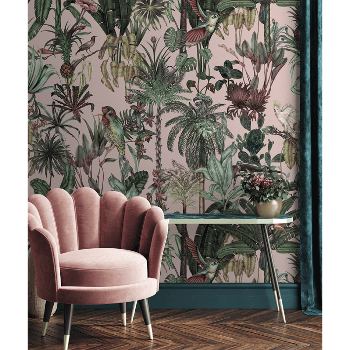 Birds Birds is a tropical pink bird wallpaper that takes its inspiration from the natural world. Featuring a collection of exotic tropical birds set amongst a lush jungle setting, this bird wallpaper brings the jungle into your home! Each illustration was originally hand-drawn, whilst the dusky pink wallpaper background adds some extra personality to your walls. Whether you’re looking for a maximalist wallpaper to make a statement or something more eclectic and floral, Birds Birds is the perfect wallpaper for you.