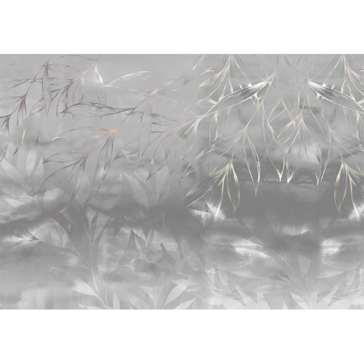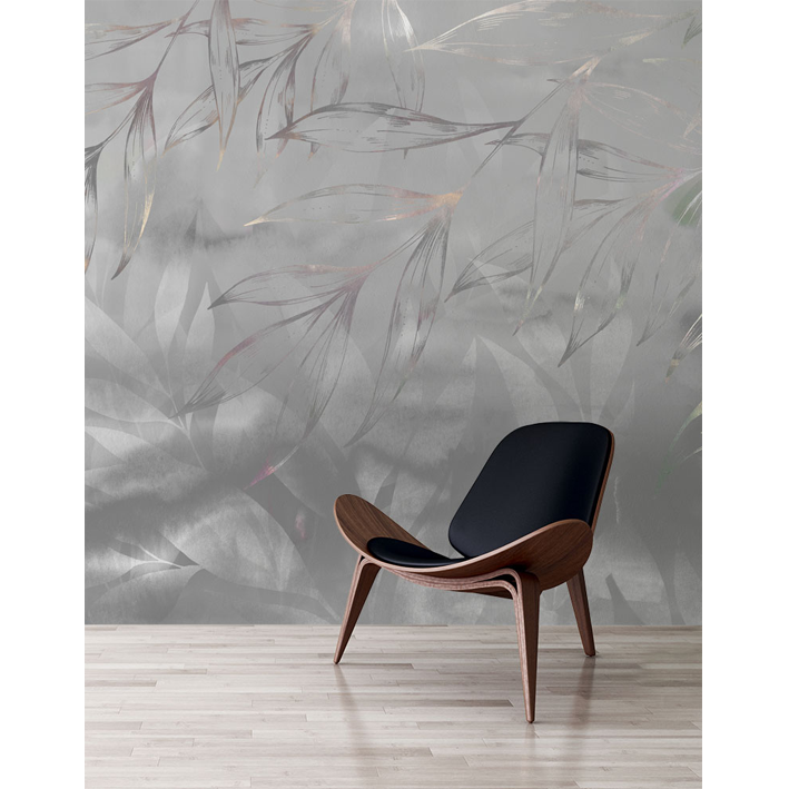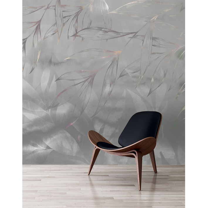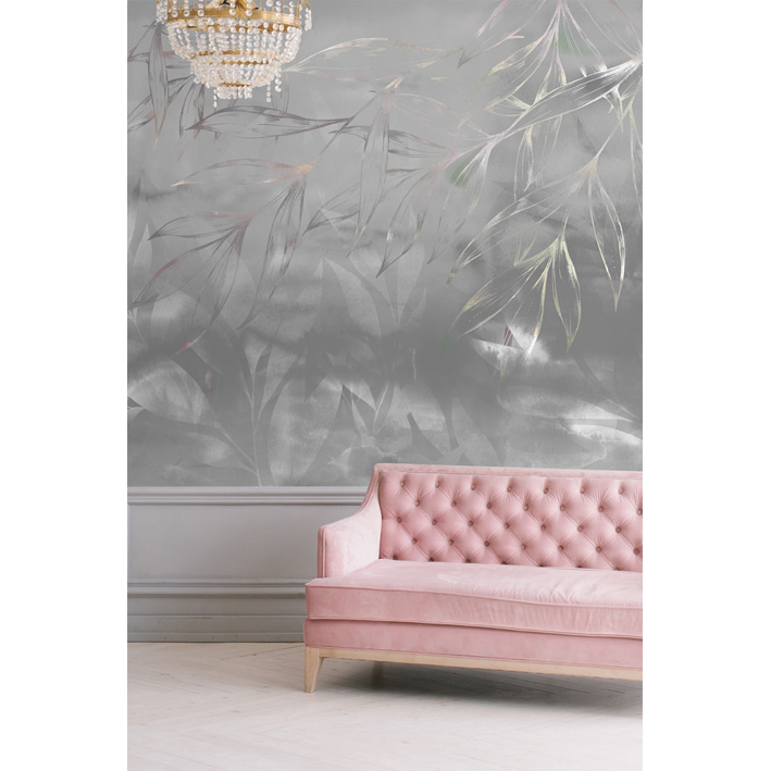 The Botanical Ice Storm is a stunning wall mural designed by artist Jessica Wilde that brings a touch of drama and intensity to a room. This silver floral abstract wallpaper mural offers a dose of texture against silvery botanics whose leaves droop down across the mural.