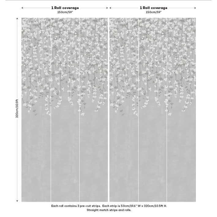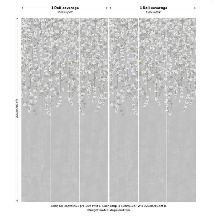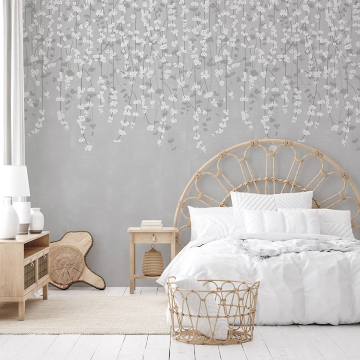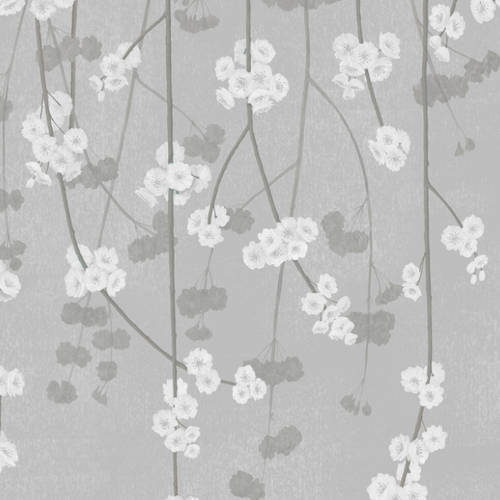 Surrender to the calm and serenity of Sakura blooms with the Cherry Blossom wallpaper by contemporary artist Joanna Charlotte. This beautiful Sakura wallpaper is perfect as a bedroom wallpaper, or to create a romantic dining room. In its Vintage White colour, the Cherry Blossom wallpaper has a warm white background with grey and teal floral highlights.