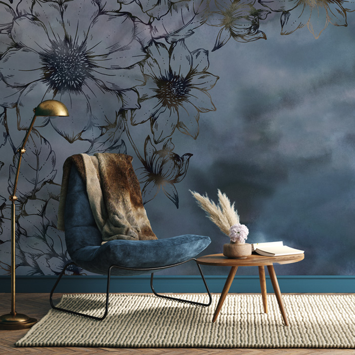 Looking at Dahlia Blossom is similar to walking down a garden row when the sun is starting to set. The gorgeous flowers sit against a dark blue background and complement light furniture in a room. This blue floral cloud wall mural spins a photo of blooming flowers living amongst the clouds. It’s an ideal choice for a room where whimsy is part of the package.