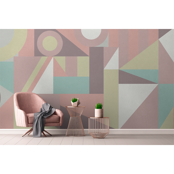 Experience the sensation of watching the dynamic circles and geometric figures flowing and falling as their capricious positioning creates an unstable balance. The textured visual language and subtle colours of this modern geometric wallpaper mural creates an interior that feels delicate, yet at the same time contemporary and dynamic. Why not embrace the angles of this modern wall mural and bring a fresh take to kitchen décor.