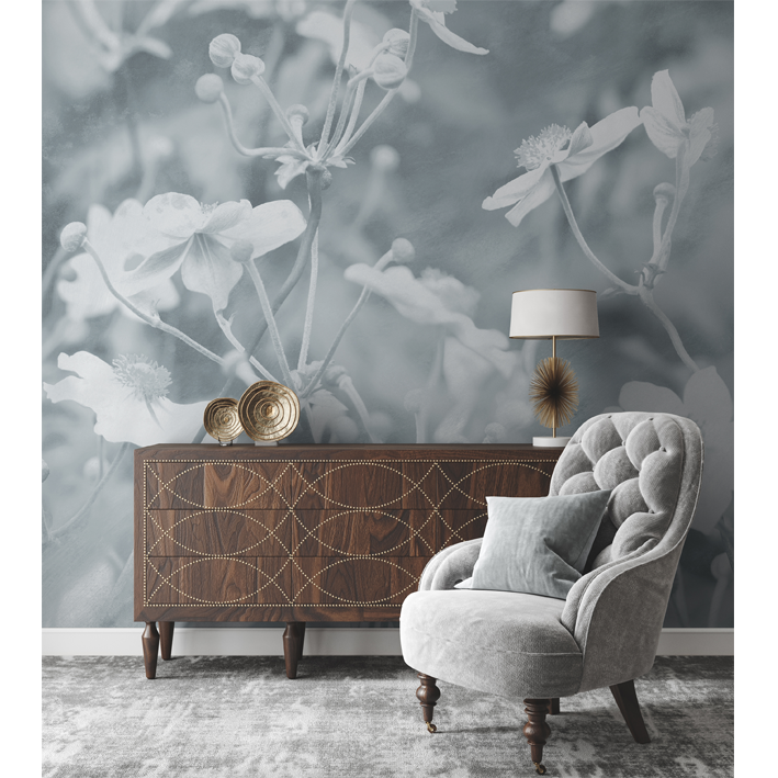 Gorgeous flowers that seem utterly realistic are splayed across the Japanese Anemone wall mural. The flowers in this blue Japanese flower wall mural climb up the wall and create a relaxing and tranquil space for socializing, working, or other activities. The mural has a muted blue background that lets the white flowers be the focus of all eyes when someone steps into the room.