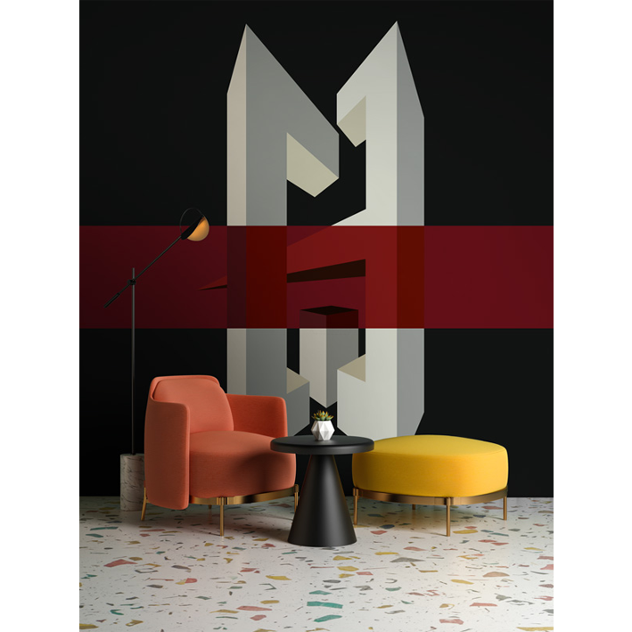 Create a modern dark interior with this breathtaking geometric wallpaper mural. The muted background is balanced by a burgundy stripe that segments the mural, adding a warm focal point. Contrast is also created by the neutral coloured structural shapes projecting into the foreground from the inky backdrop. This black & red geometric art wallpaper mural is the perfect way to introduce a dark abstract aesthetic into a bedroom or dining room interior.