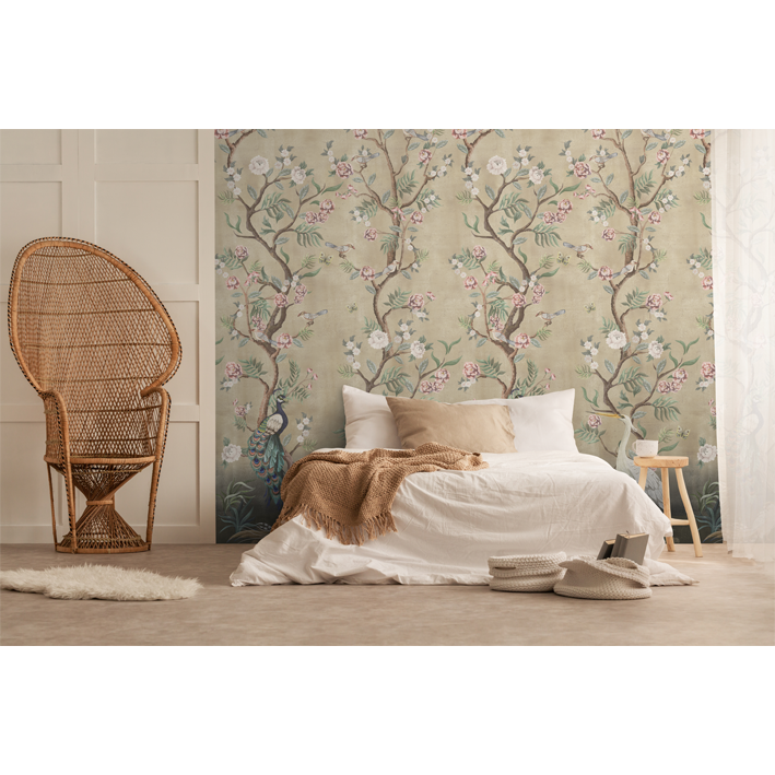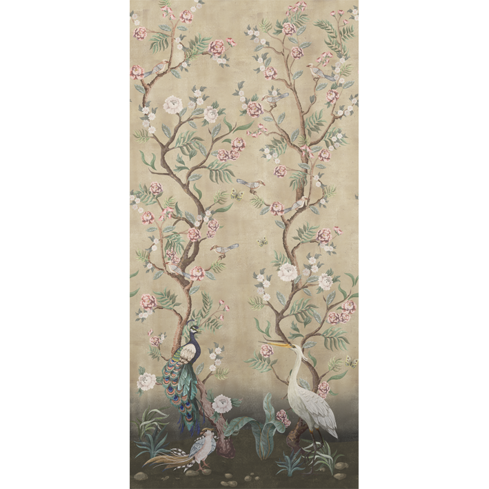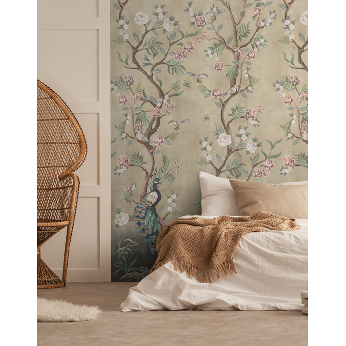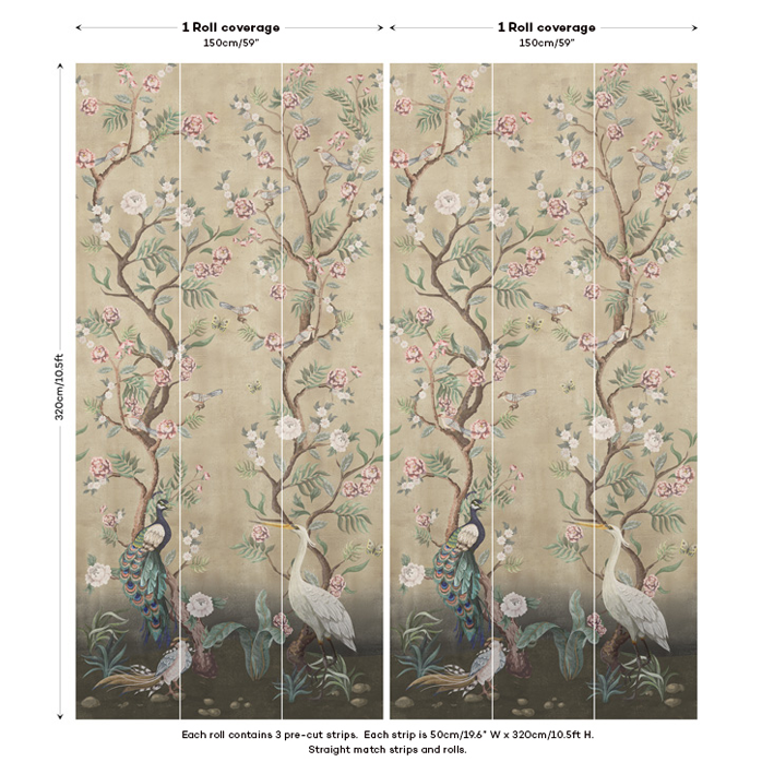This beautiful cream Chinoiserie wallpaper has a subtle sandy background with a distressed style to add a vintage feel. Our Kubla Khan wallpaper was designed by our talented in-house artists and incorporates creamy flowering cherry blossoms and beautiful birds sitting upon their branches. This designer wallpaper makes a beautiful feature wall for anyone looking for a floral wallpaper with cherry blossom designs.