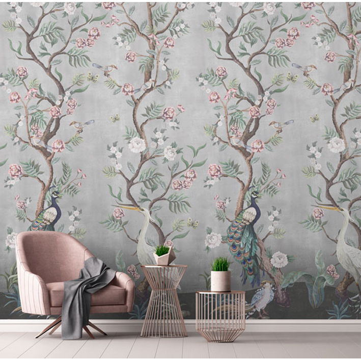 Capturing the sophistication of Chinoiserie style wallpaper, this wall mural will look beautiful in a bedroom or living room at your home.