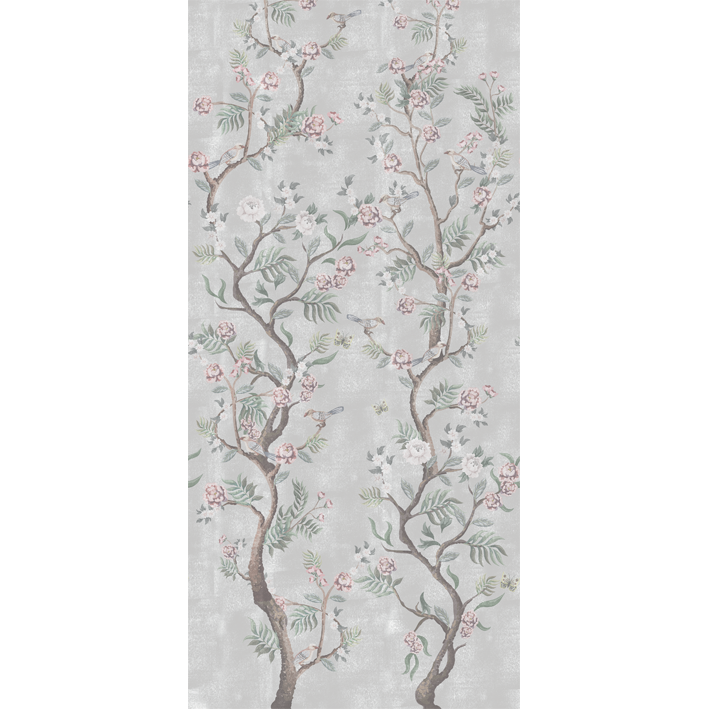 The charming and delicate grey chinoiserie bird wallpaper, part of our “Matsumoto” collection, is perfect for adding a touch of romance to your walls. The soft grey colour creates a neutral background for the beautiful pastel hues of the flowers, and the birds bring an extra bit of whimsy to the design. With its beautiful distressed texture and delicate detailing, this grey chinoiserie bird wallpaper is perfect for adding a touch of luxury to any bedroom, living room or bathroom. Decorate with natural materials or create a luxurious style with metallic accessories.