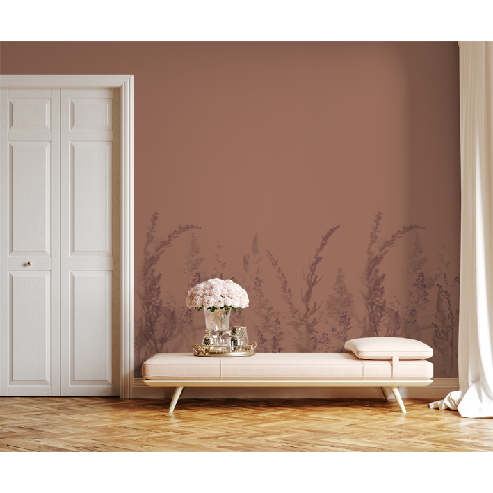 Windy Meadow wallpaper takes the natural beauty of flowers and plants and places them in a breezy environment that creates a feeling of romance. This orange Scandinavian nature wallpaper was designed by Anna Kuukka and creates a focal point that speaks to relaxation and enjoyment of the small things.