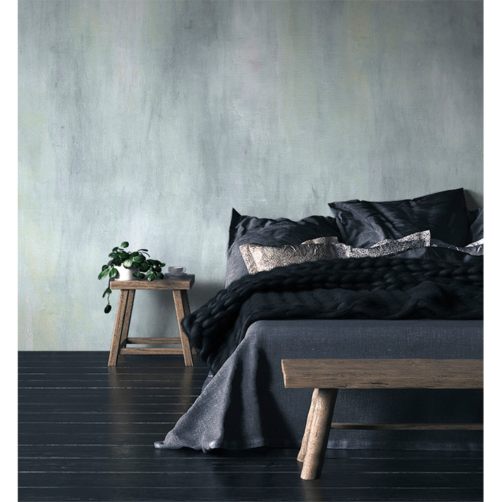 The stunning watercolour stains and acrylic brush-strokes represent the traces of the passage of time on a stone surface. The gentle cool blue ombre color pattern creates nuances of light and shadow giving both depth and structure to this abstract texture wallpaper mural design. Add interest to a bedroom with this atmospheric wash of blue and gray abstract motifs and allow the hypnotic pattern to create the perfect sleep space.