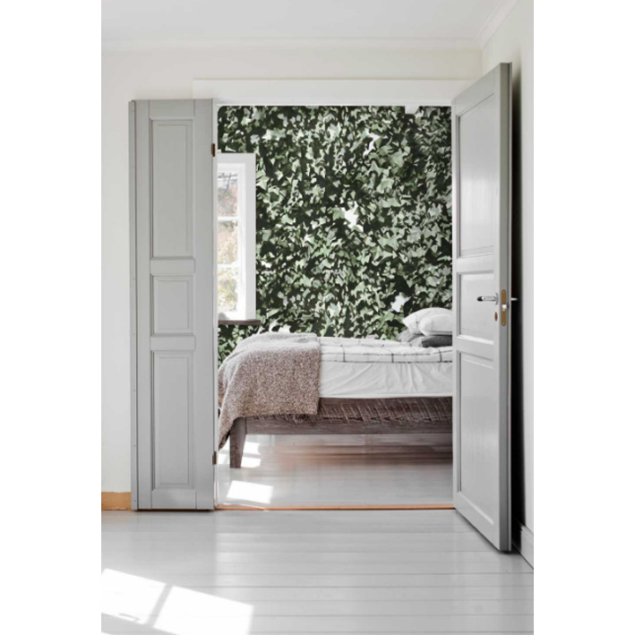 The Most Beautiful Things Hide wallpaper was designed by Finnish artist Tamara Piilola and features a convergence of realistic and magical nature elements. The grey & green trendy ivy nature wallpaper seems as if it could be an opening to a vibrant forest that begs you to step inside.