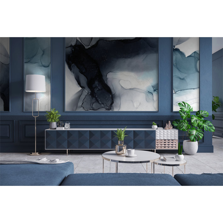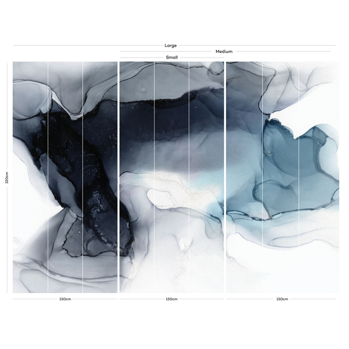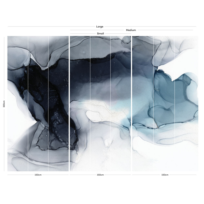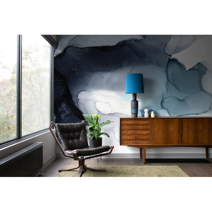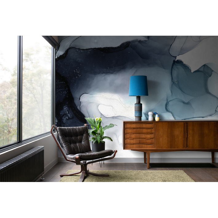 Choose the moody blues with this organic blue abstract wall mural by LA artist Stacy Solodkin. A romantic wash of blues and greys drift across the canvas, capturing the mist at the base of waterfall.