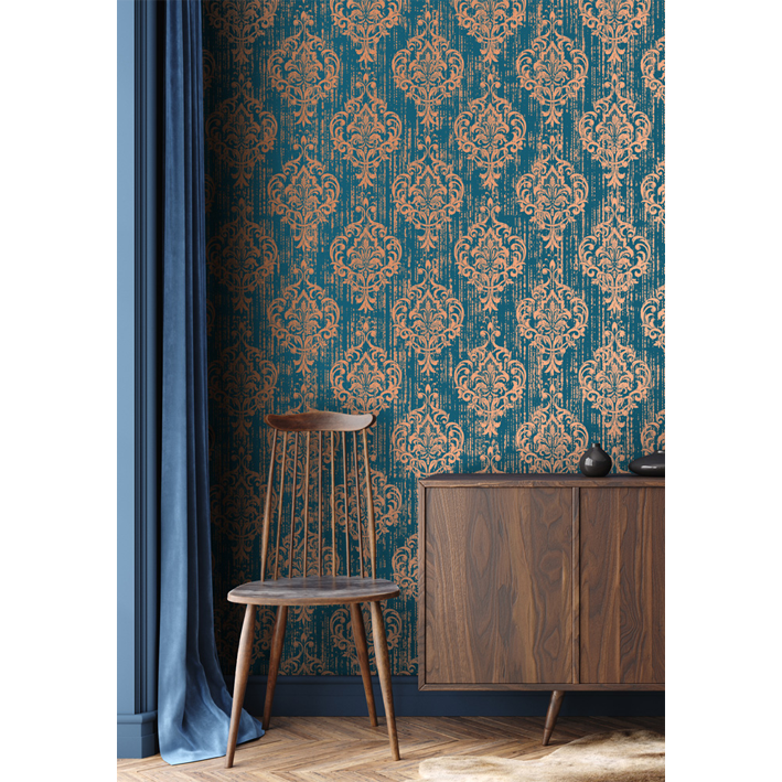The Wentworth distressed damask wall mural captures the classic Victoriana wallpaper motif with its linear brocade pattern. Oozing opulence with its richly decorative pattern, the luxe factor is only increased by the metallic sheen of the brocade, giving the illusion the wallpaper is embossed – typical of a traditional brocade wallpaper. The classic range of background colours act as the perfect foil to the brocade motif: choose from 5 elegant colourways.