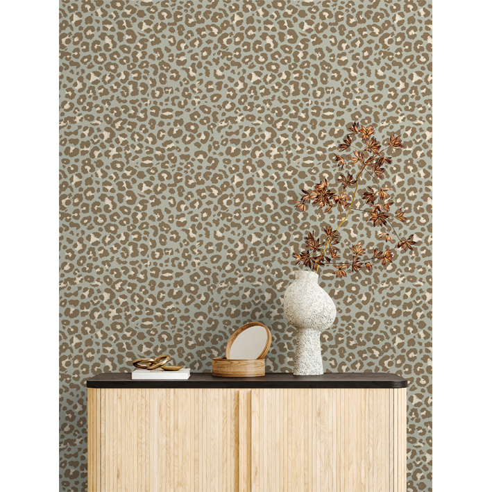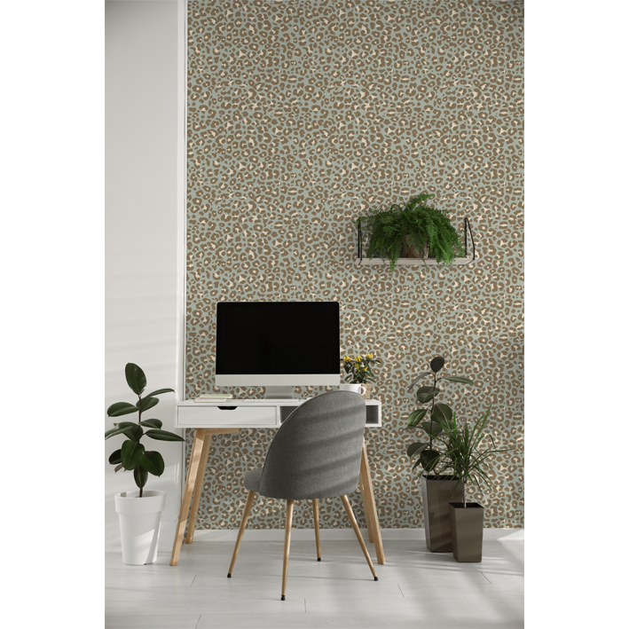 This green leopard print wallpaper from our Zambezi range create a relaxing sanctuary in your home. It has an exotic design in colours that fit well as bathroom wallpaper and could easily pass as a green cheetah print wallpaper instead. The colours and designs also fit into living rooms, dining rooms, and bedrooms of those who enjoy animals. It could also add a feeling of whimsy into kids’ bedrooms or playrooms.