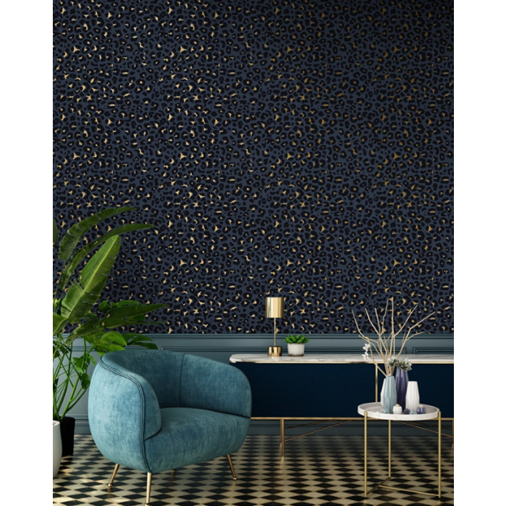 Show off the animal inside you by emblazoning the walls with a blue & gold leopard print wallpaper. The designer wallpaper features a dark background with small pops of gold that add intensity to the design. Consider adding it to a bedroom or another space where you want to show off all the most primal and natural aspects of your personality.