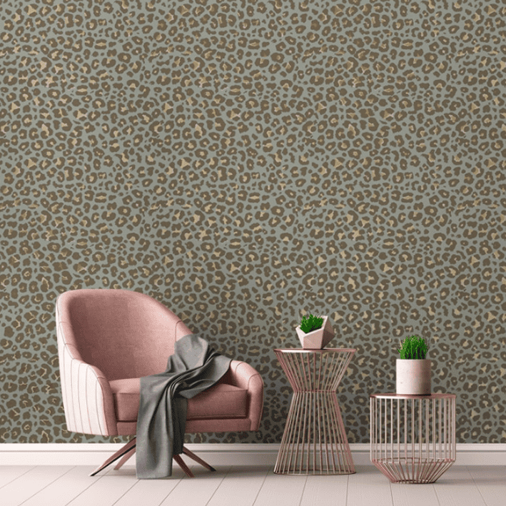 This green and gold leopard print wallpaper from our Zambezi Luxe range displays the colours and markings of the popular exotic cat in any room. It takes a classic design, which is similar to a green and gold cheetah print wallpaper, and adds unique colours to ensure your walls are the best of classic and contemporary design. The modern wallpaper fits into most spaces to add a touch of colour, including offices, bathrooms, and personal spaces like bedrooms.