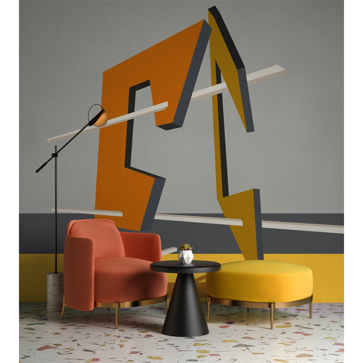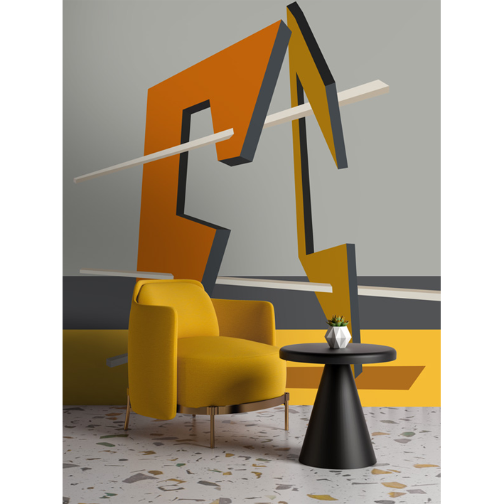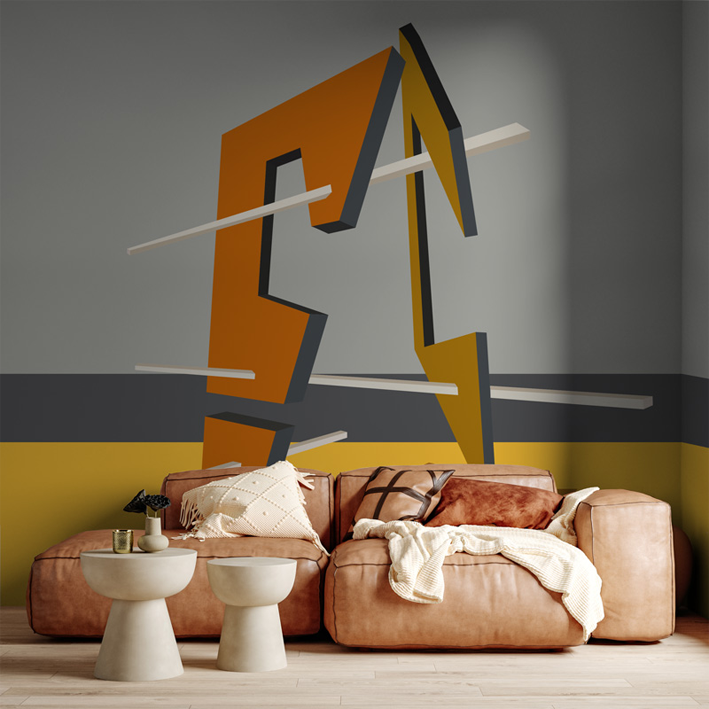 Duja is a modern geometric mural created by artist Tim Muddiman with his typical blend of abstract shapes and fresh colour palette. The three tone vertical backdrop gives a pop of colour with a vibrant yellow band, providing a solid base for the abstract sculptural elements to emanate. Choose this stunning grey & yellow abstract wall mural to make a contemporary statement in a hallway or home office.