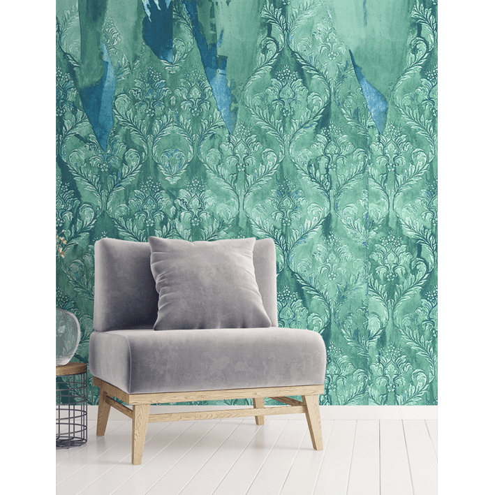 This is a romantic damask wallpaper, realized in stunning high definition detail. A trendy green wallpaper, Layered with Love Green was originally painted by Lyra Morgan as a diptych of canvases. It’s infused with the artist’s obsession with transience and the different forms water can take.