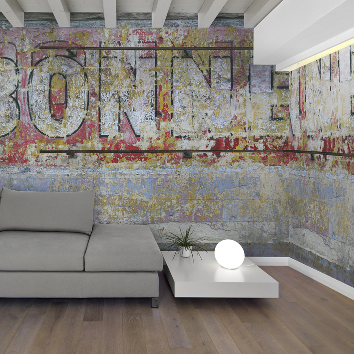 Very high definition photo of an "advertisement" once painted on a building wall, captured on the roads of France. Small works of art that will soon no longer exist. This panoramic wallpaper now allows them to exist... forever.
