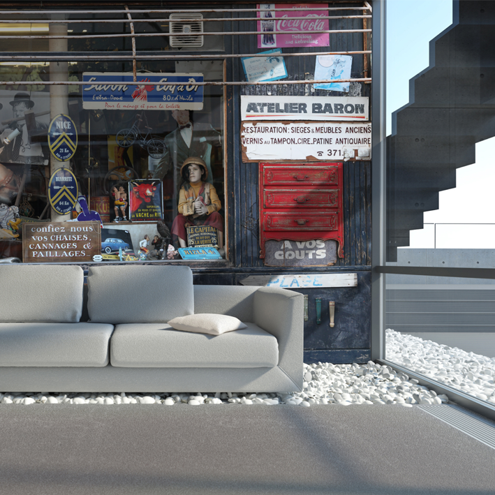 BÉTON BLEU ET PIERRES BLANCHES