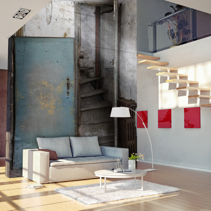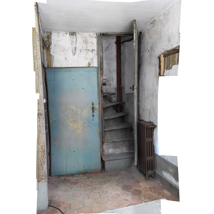 Top floor... A small staircase that goes up to the bedroom-studio of one of those brilliant writers and artists from another century. Life is a poem for this romantic panoramic wallpaper!