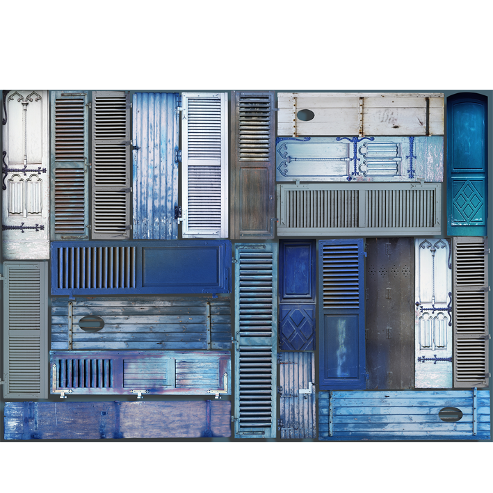 An assembly of faded blue, ultramarine, cobalt, and all azure shades to match its panoramic wallpaper to the blue of its swimming pool, sofa, garden table or simply to the blue of the sky!