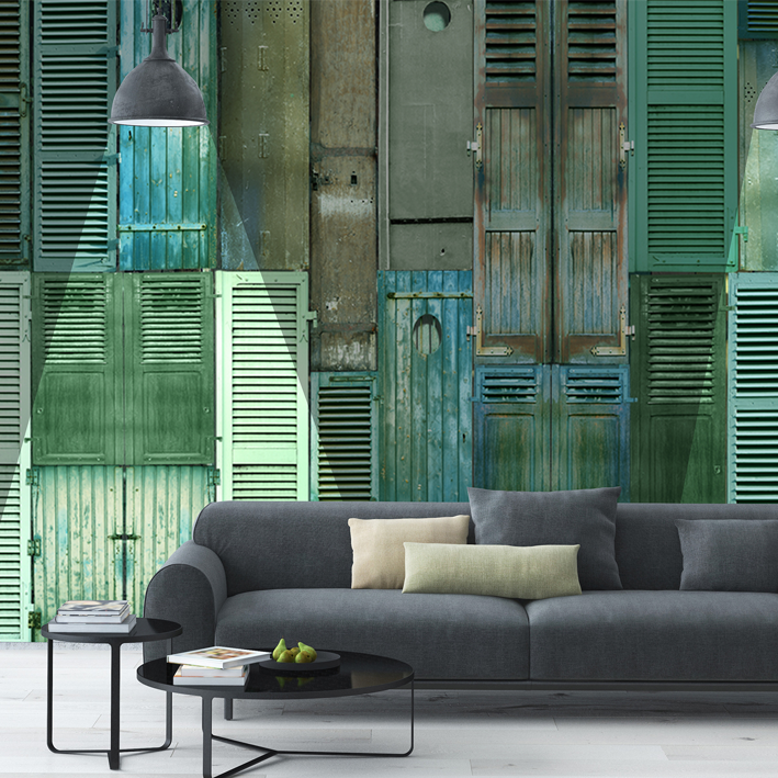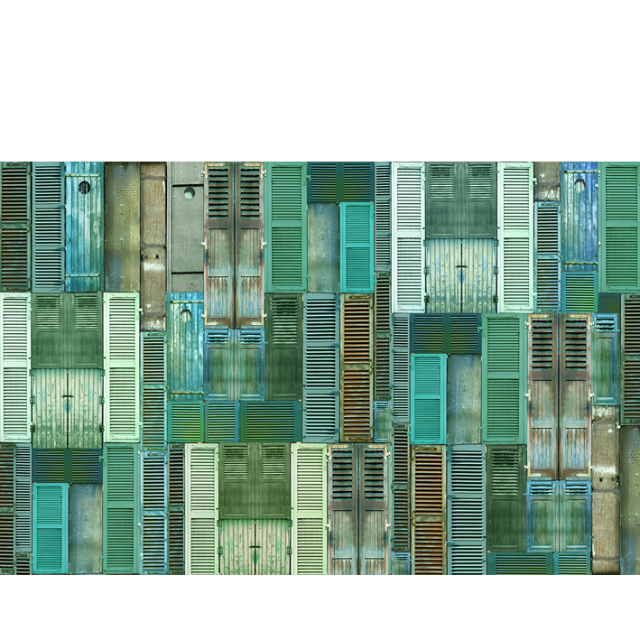 Shutters ready to open on nature, greenery, fresh air, the hope of a day full of joy and joie de vivre for this panoramic wallpaper... optimistic!....