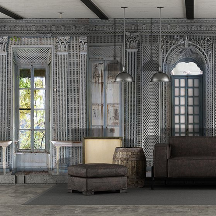 Distant memories of my visits to the orangery of the family castle. There are still those magnificent wooden trellises greyed by time and those columns carved in the same wood. A little dust and a few broken windows do not make me forget the smell of orange blossom that one can still imagine, looking at this magnificent panoramic wallpaper.