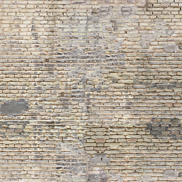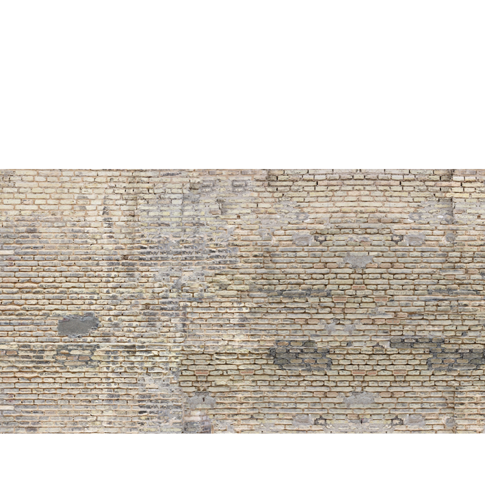 These bricks here have seen some bad weather! A mix of yellow or beige terracotta, touches of cement and dark grey flint, this panoramic wallpaper is surprisingly realistic.