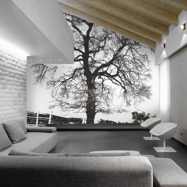 ARBRE ET OISEAUX ROSE SUR GRIS