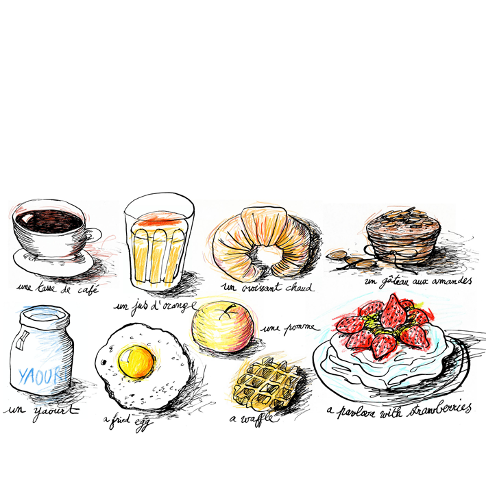 Dinner, British people! Colourful and drawn with pencils, an inventory of wonders to be tasted in emergency at sunrise! And a panoramic wallpaper that makes our mouths water and our spirits soar!