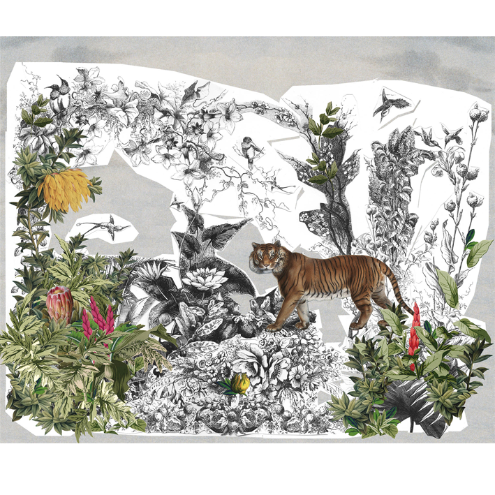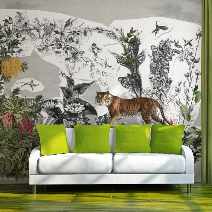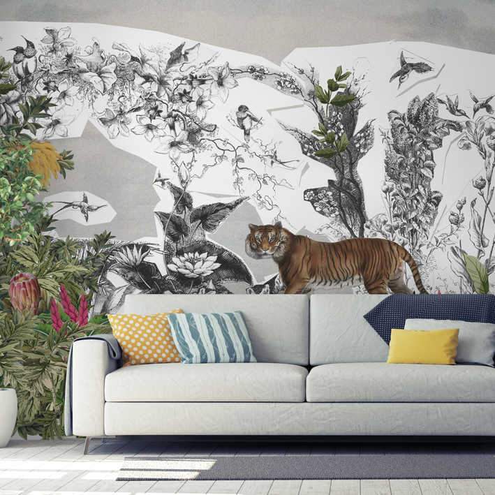 JUNGLE CARTOON B&W 2 WALLPAPER