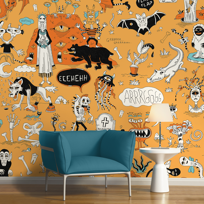 WALLPAPER JUNGLE CARTOON B&W