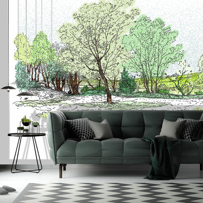 WALLPAPER “ARCHITECT'S DRAWING ON A DARK GREEN BACKGROUND