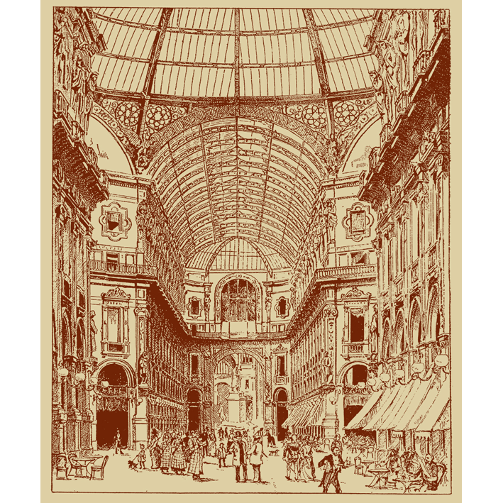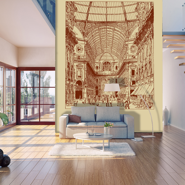 A short visit to some of the most famous fashion designers and decorators of the Belle Epoque in Milan. Stop on the terrace to enjoy an espresso... We chat and show off in the beautiful society. Nothing has changed, everything is fine. This panoramic wallpaper is timeless.