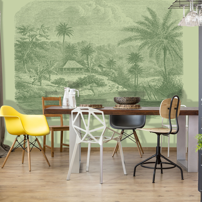 WALLPAPER “ARCHITECT'S DRAWING ON A DARK GREEN BACKGROUND