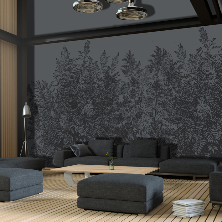 FLEURS CHINOISES GRISES FOND MUR ANCIEN