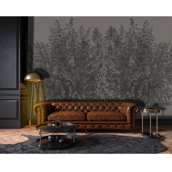 FORÊT AU CRAYON NOIR SUR GRIS