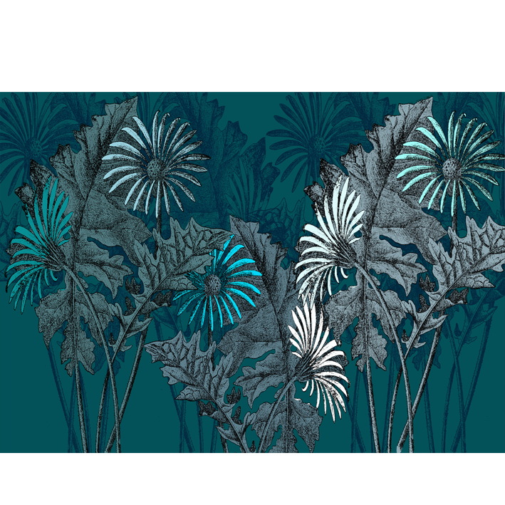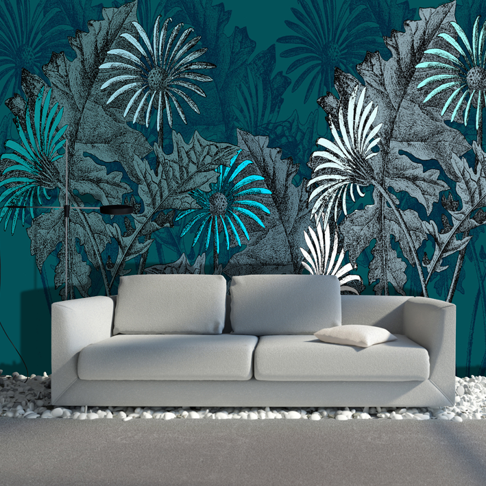 FLEURS BLEUES GÉANTES SUR FOND BLEU