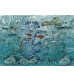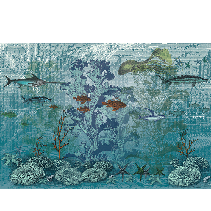 ON THE JIB, BLUE ON AN ECRU BACKGROUND