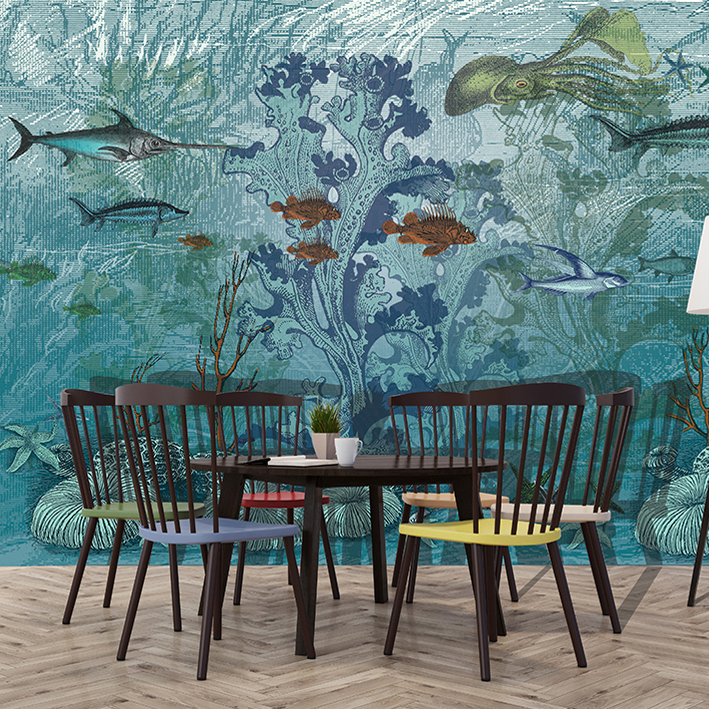 WALLPAPER “ARCHITECT'S DRAWING ON A DARK GREEN BACKGROUND