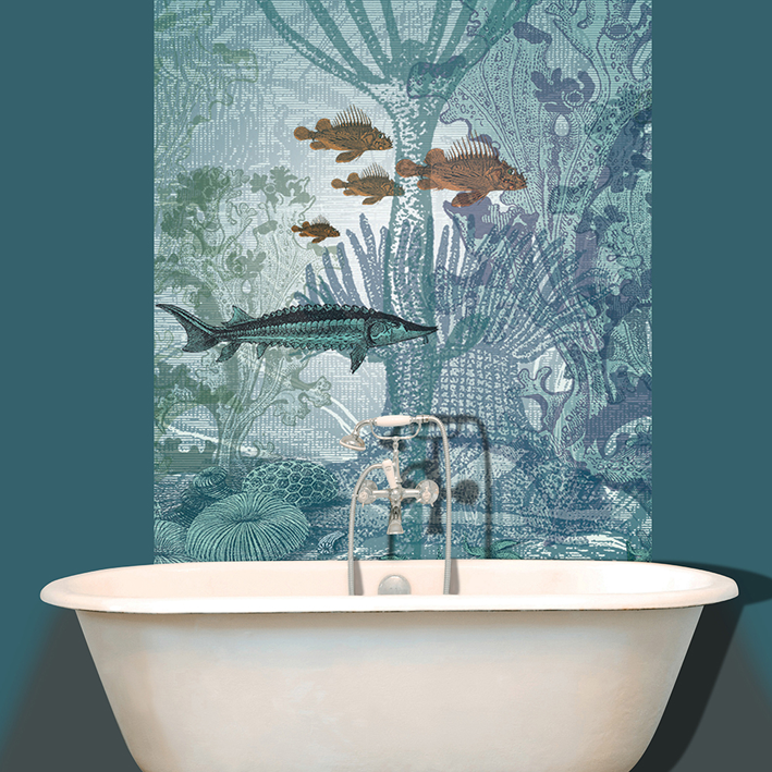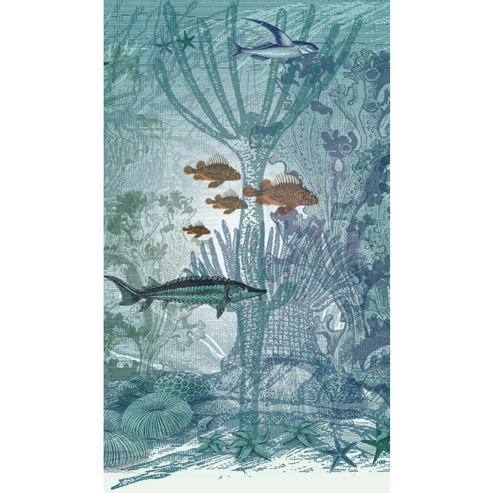 ON THE JIB, BLUE ON AN ECRU BACKGROUND