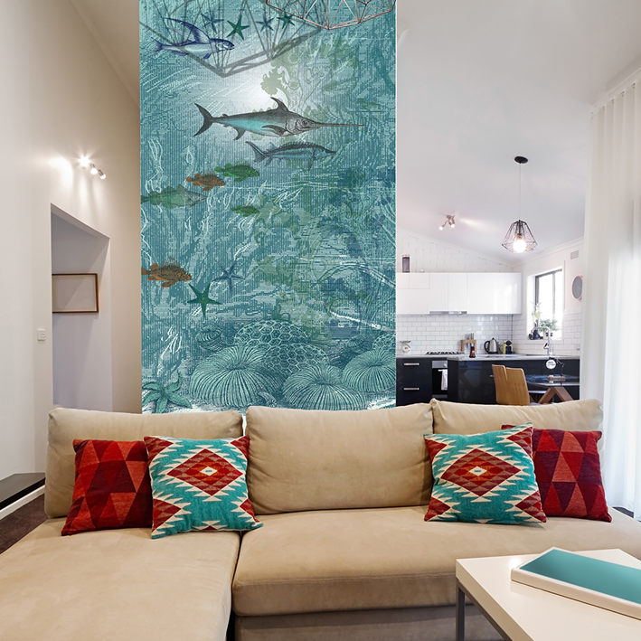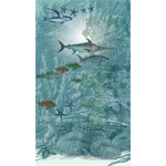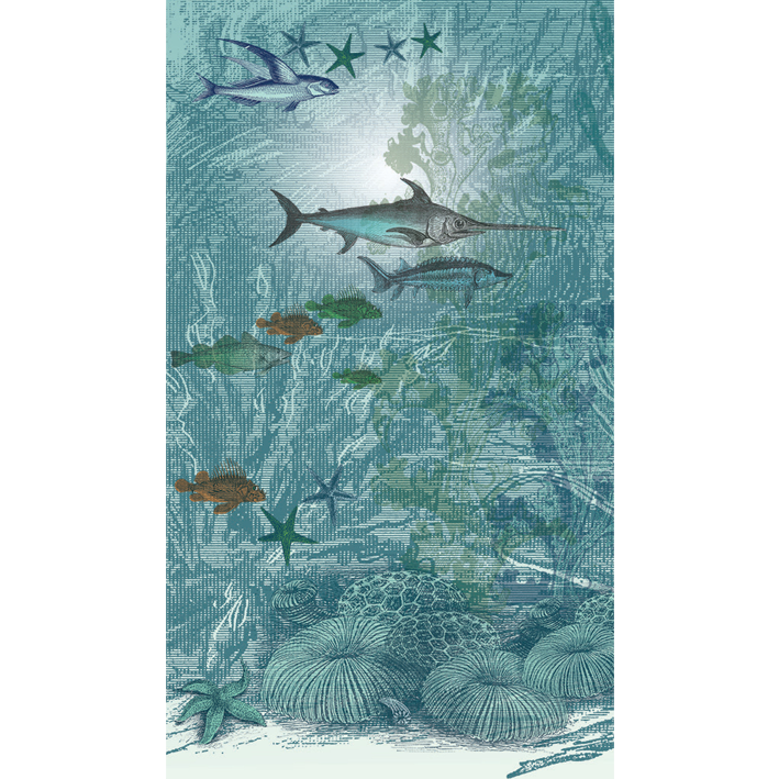 ON THE JIB, BLUE ON AN ECRU BACKGROUND