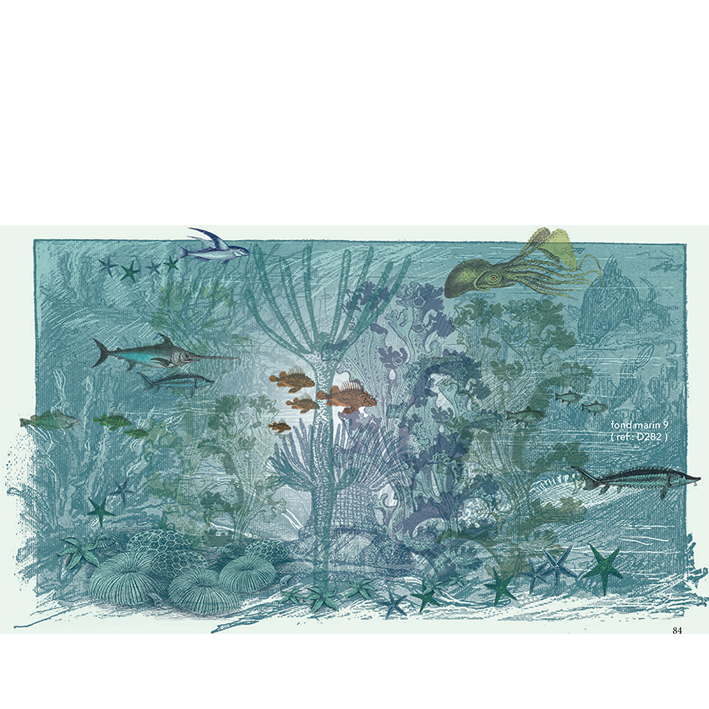 ON THE JIB, BLUE ON AN ECRU BACKGROUND