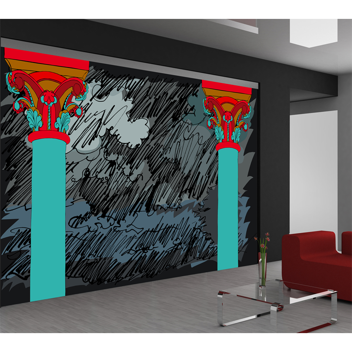COLONNE CORINTHIENNE FOND BÉTON PEINT