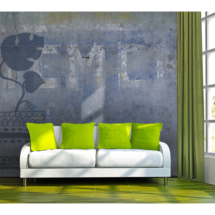 FLEURS CHINOISES GRISES FOND MUR ANCIEN