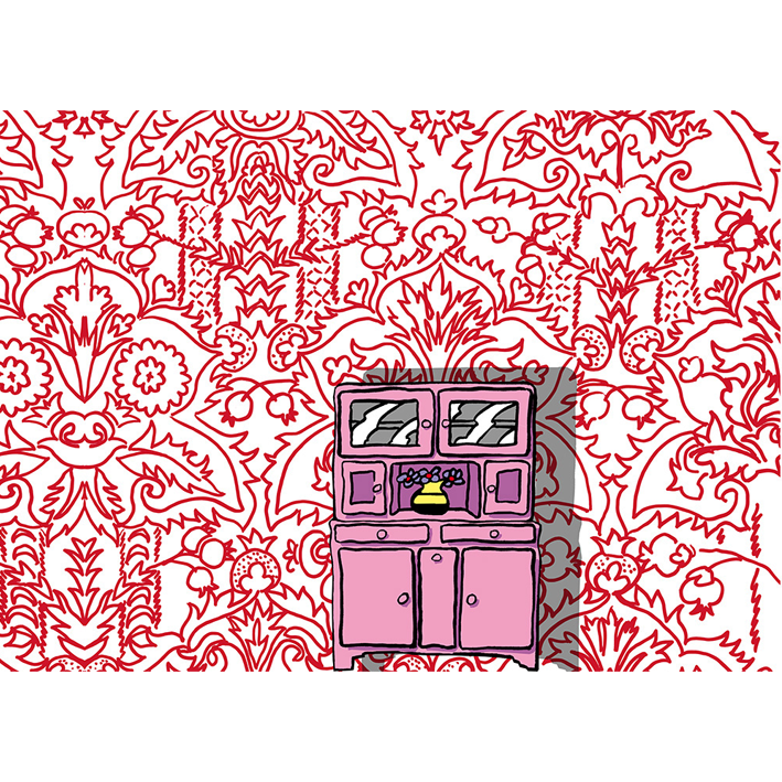 ARBRE ET OISEAUX ROSE SUR ROUGE