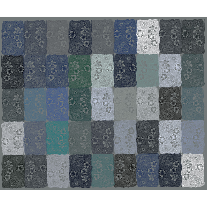 FLEURS CHINOISES GRISES FOND MUR ANCIEN