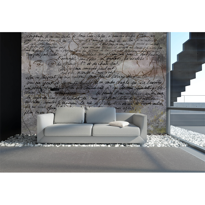 First lines, in black ink on a grey wall, of the greatest of novels. Just sketched portrait of the greatest writer. The candle, the reading, the sleeping child, everything is in this panoramic wallpaper, nothing has been forgotten.