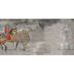 Trip to India. The colourful and meticulous drawing of a proud horseman, facing his reflection carved into the decrepit wall. Vestige of another era. A panoramic wallpaper with a change of scenery.